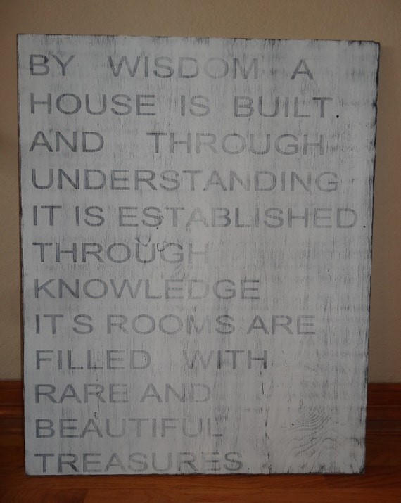 By Wisdom A House Is Built Rustic Hand Painted Wood Etsy