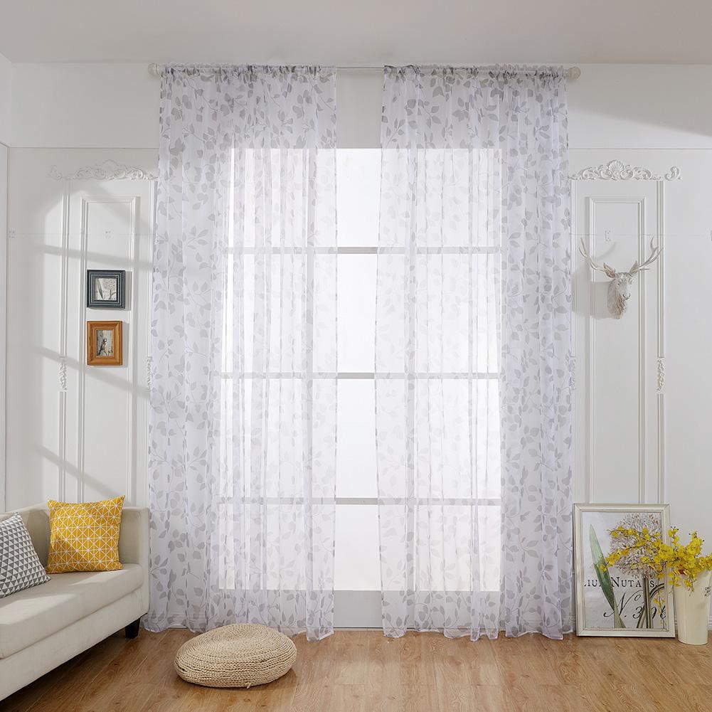 Simple Leaves Print Blackout Curtains Living Bedroom Window Drapes