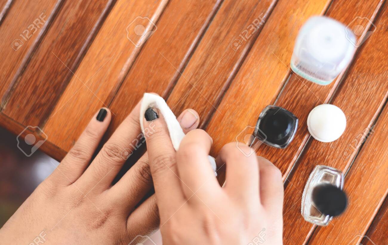 Nail Polish Remover Woman Hand And Nail Varnish Remover With