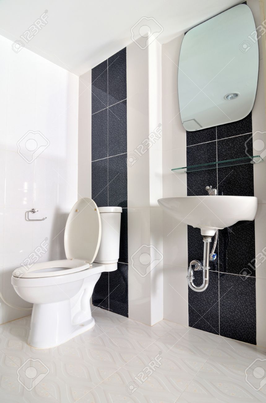 Nice Small Simple Bathroom With Sink And Toilet Stock Photo