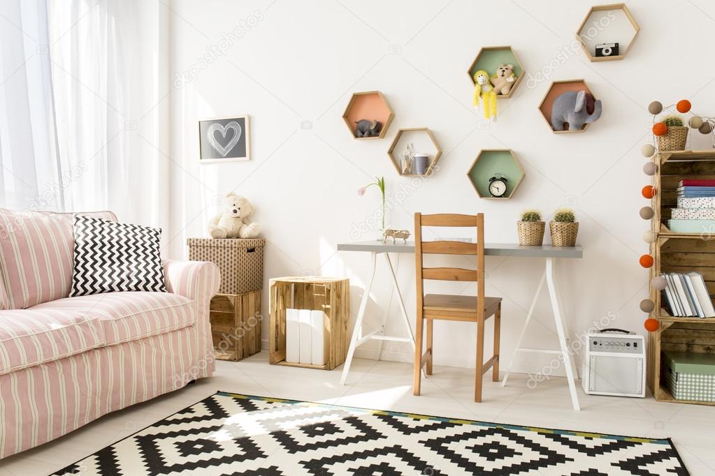 Modern Children Girl Play Room With Bed And Study Desk Cozy And