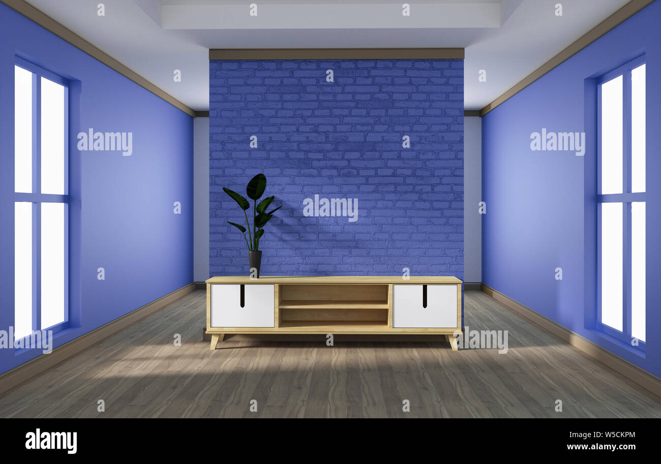 Cabinet Design Modern Living Room With Purple Brick Wall On White