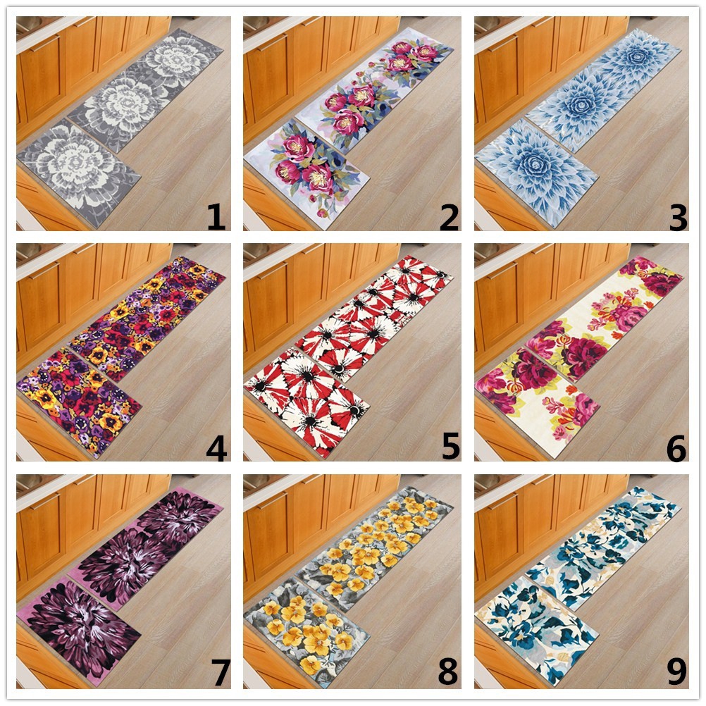 2pcs Set Flower Pattern Doormat Kitchen Floor Mats Bathroom Living