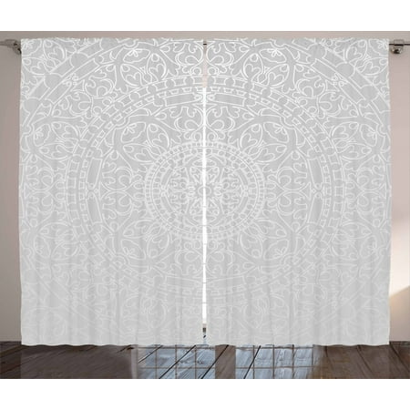 Grey And White Curtains 2 Panels Set Oriental Ornamental