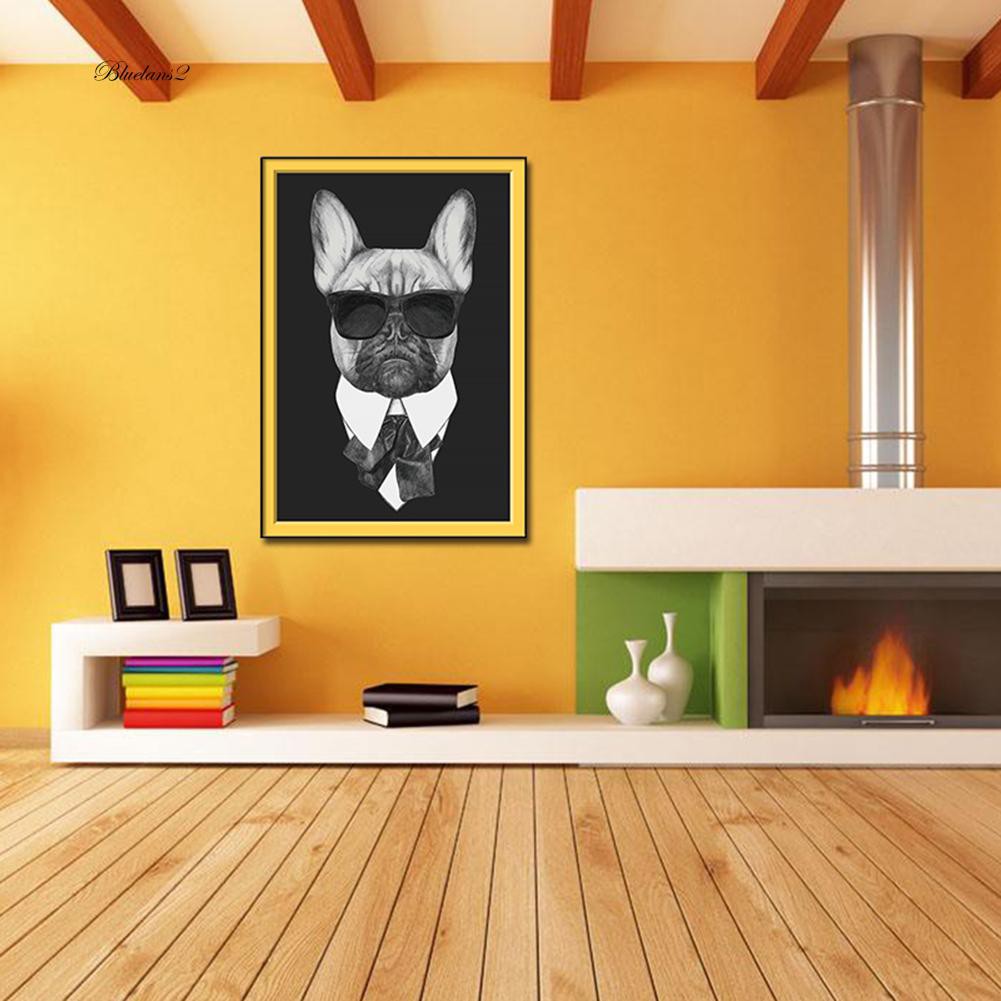 Blue2 Cool Dog Suit Animal Frameless Wall Art Painting Living