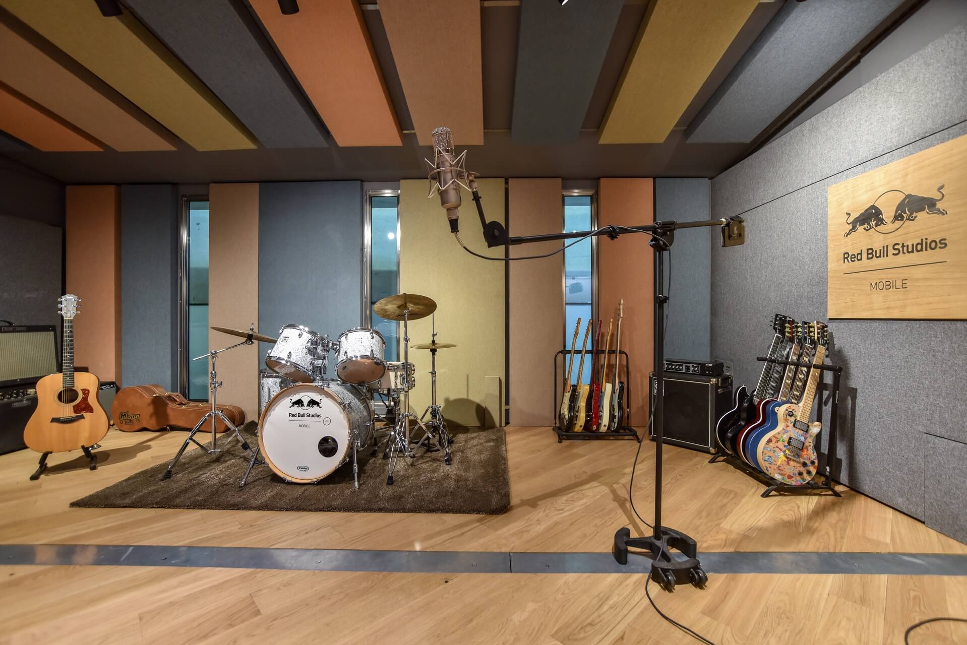 Custom Designed Live Room With Acoustic Window Treatment Ceiling