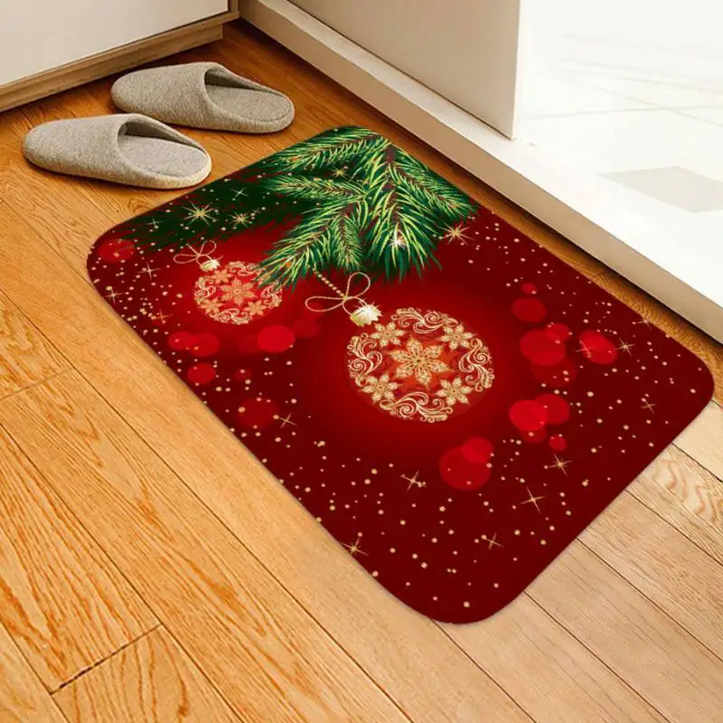 Soft Anti Slip Flannel Rug Xmas Pattern Area Mat Rubber Backing