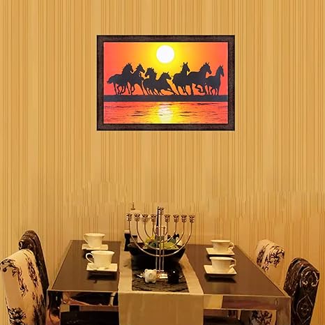 Jaipuri Shop Texture Canvas Print Seven Horses Painting With Brown
