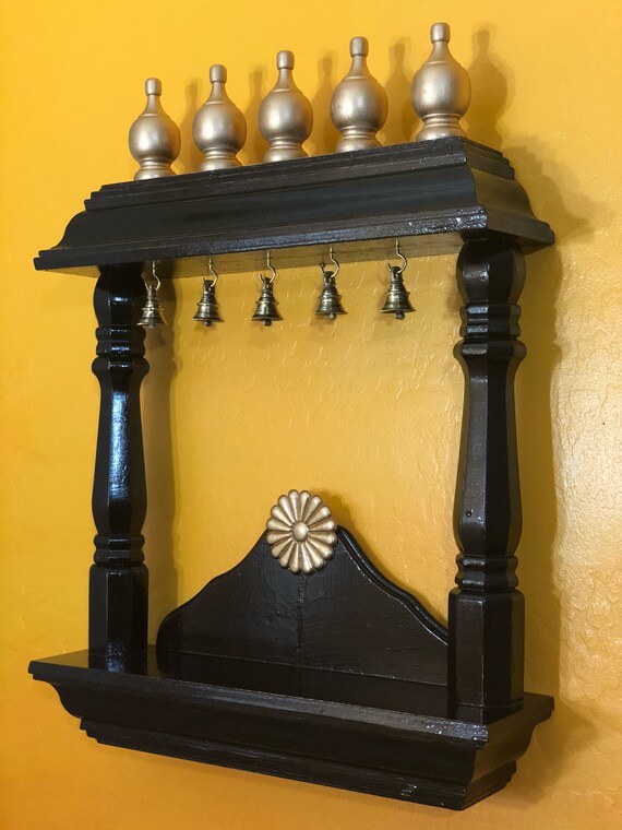 Mini Pooja Mandir India Lamp Home Decor Entryway Wooden Idol Shelf